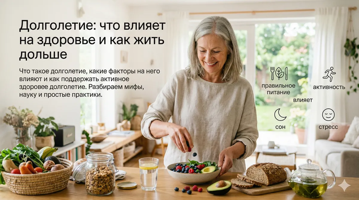 Что такое долголетие, какие факторы на него влияют и как поддержать активное здоровое долголетие. Разбираем мифы, науку и простые практики.